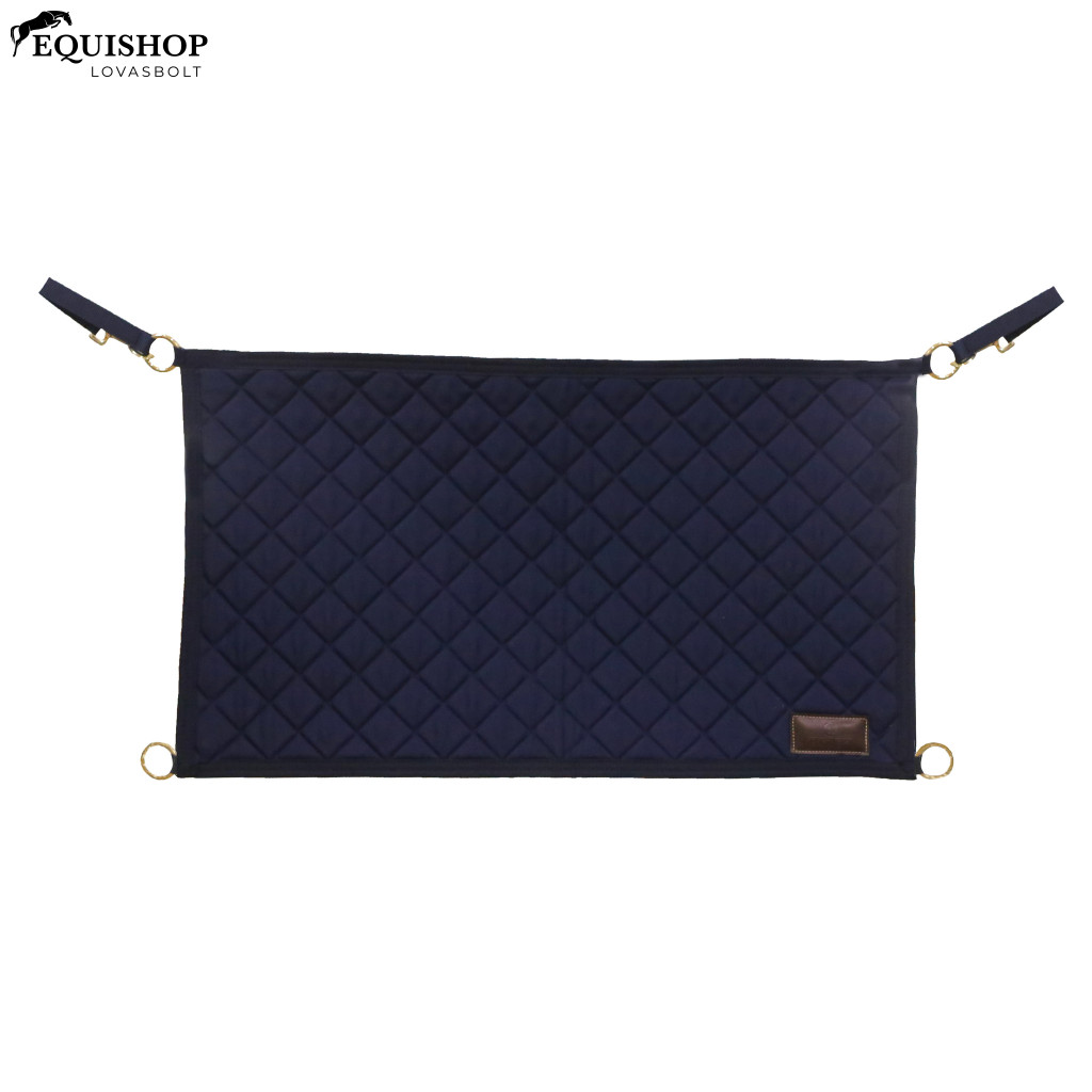 A Kentucky istállóőr lehetővé teszi, hogy a ló pihentesse a fejét a boxon kívül. Ennek az istállóvédőnek két megerősített arany színű gyűrűje van