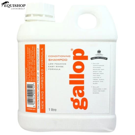 A jellegzetes illatú Gallop Kondicionáló Sampon eltávolítja a port, az izzadtságot és egyéb szennyeződéseket, rendszeres használata ajánlott. Csak kismértékben habzik, ezért könnyen leöblíthető, használata praktikus.