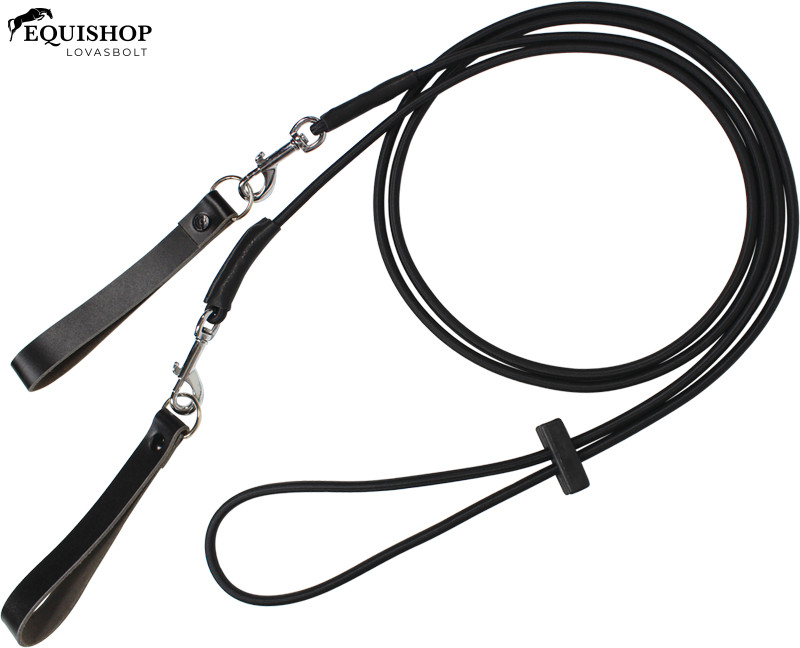 Rugalmas chambon fém karabínerekkel és bőrhurkokkal.