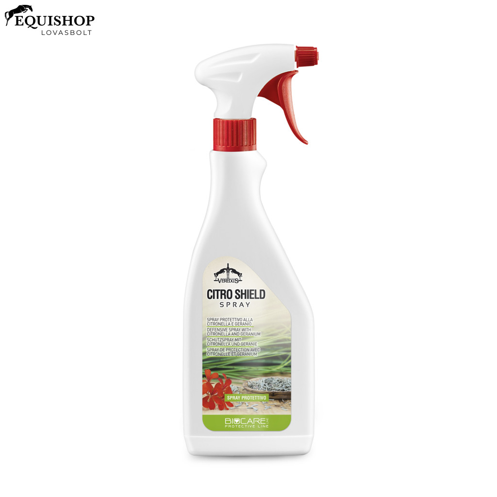 Citromfű és geránium alapú védőhatású spray. Hatékony védelem illóolajokon és növényi kivonatokon alapul. A citromfű és a geránium ismert tulajdonságai valódi védőréteget képeznek a ló szőrén. A kiegyensúlyozott összetétel lehetővé teszi a gyakori, akár napi többszöri használatot a védőhatás megújítása érdekében.