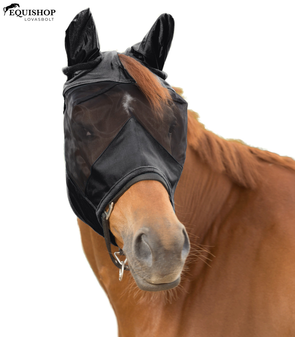 Ideális 3 az 1-ben védelem a bosszantó rovarok ellen. A cipzár lehetővé teszi az orrvédő gyors és egyszerű cseréjét. A maszk viselhető orrvédő nélkül, orrvédővel vagy rojtos légyvédővel. Címeres nyílással