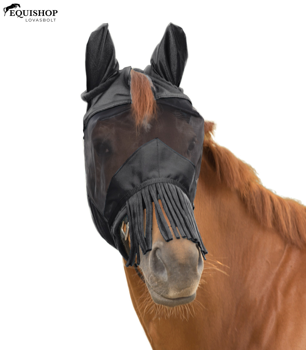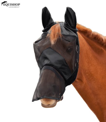 Ideális 3 az 1-ben védelem a bosszantó rovarok ellen. A cipzár lehetővé teszi az orrvédő gyors és egyszerű cseréjét. A maszk viselhető orrvédő nélkül, orrvédővel vagy rojtos légyvédővel. Címeres nyílással