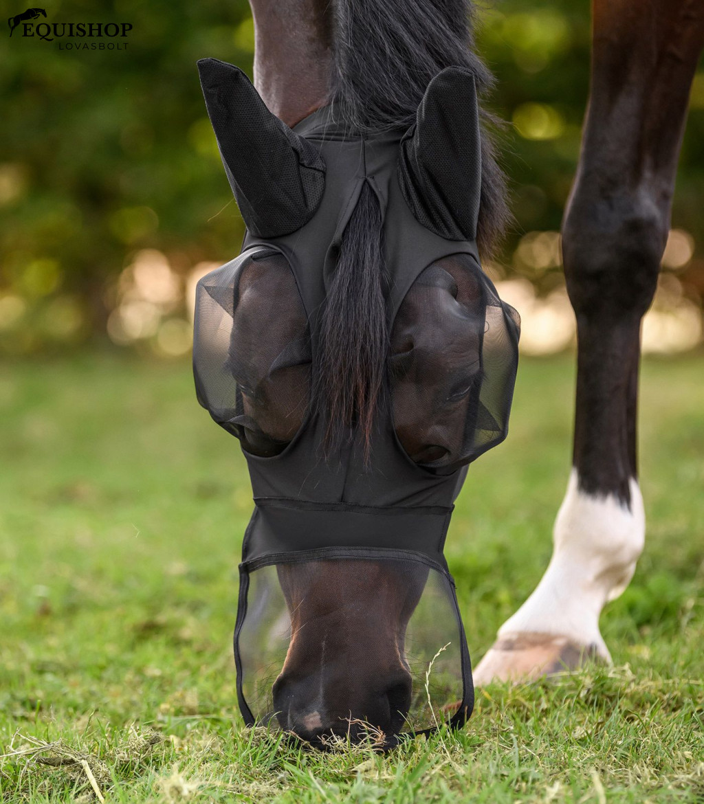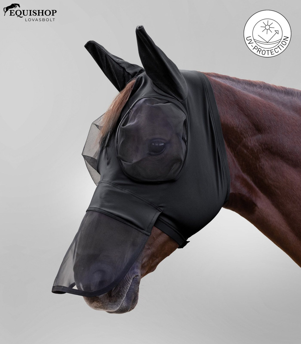 Rugalmas maszk a rovarok elleni megbízható védelemért. A rugalmas anyag tökéletesen illeszkedik és megakadályozza a legyek bejutását. A nagyméretű szemkörnyék kivételes kényelmet biztosít. A hosszú cipzár megkönnyíti a fel- és levételt. Az érzékeny orrfelület védelmét a finom hálós anyagból készült, jól formázó, beépített orrvédő biztosítja.