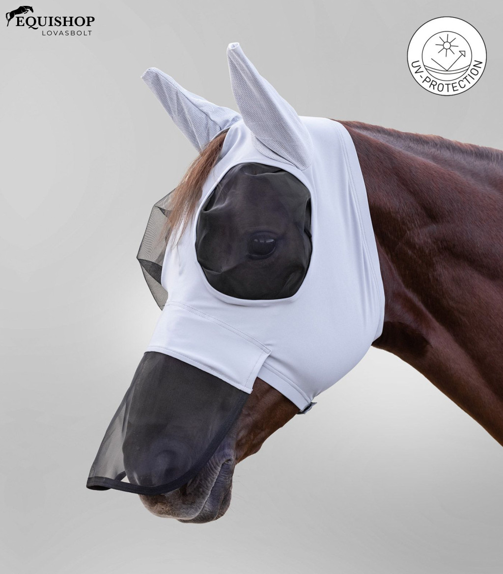 Rugalmas maszk a rovarok elleni megbízható védelemért. A rugalmas anyag tökéletesen illeszkedik és megakadályozza a legyek bejutását. A nagyméretű szemkörnyék kivételes kényelmet biztosít. A hosszú cipzár megkönnyíti a fel- és levételt. Az érzékeny orrfelület védelmét a finom hálós anyagból készült, jól formázó, beépített orrvédő biztosítja.