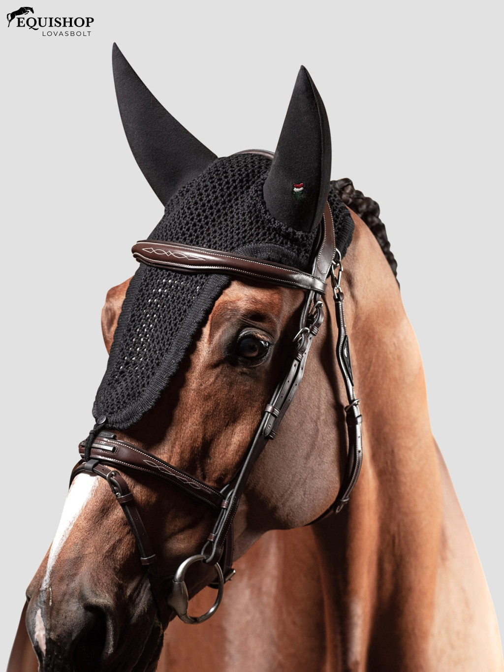 Fülvédő hipoallergén és antibakteriális pamutból. Zajszűrő technológia fülmagasságban, rögzítő hurok a kantárhoz. Ideális a zajra érzékeny lovak számára.