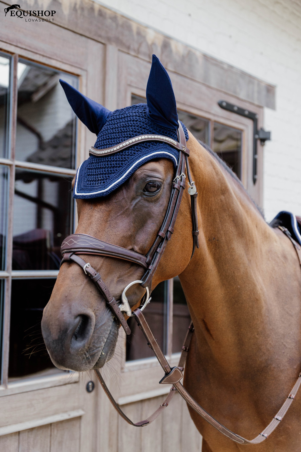 A klasszikus megjelenés tökéletes kiegészítője a Wellington Diamond Rope fülvédő. Ez a Kentucky Horsewear fülvédő lovaglás közben védi a ló fülét a legyektől. A lenyűgöző megjelenésért kombinálhatod Diamond Rope nyeregpárnánkkal is.
