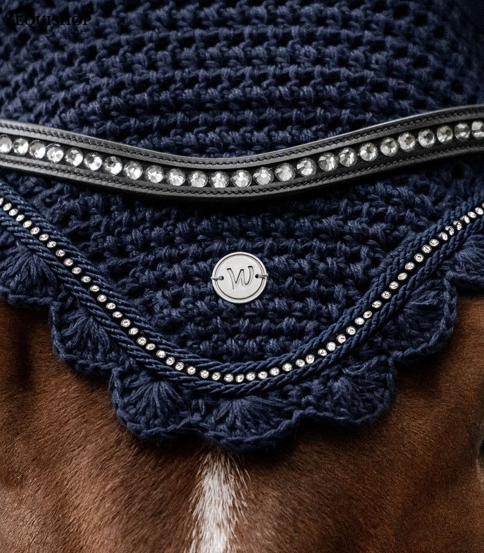 Kiváló minőségű, rugalmas fülrésszel ellátott fülvédő. Elegáns megjelenést kölcsönöz a fémlemez és a két tónusú díszzsinór között elhelyezett csillogó strassz szalag.