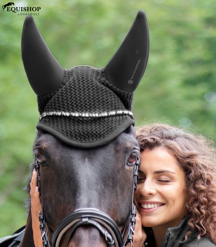 Hangszigetelő anyaggal ellátott fülvédő. Kifejezetten zajérzékeny lovak számára tervezve. A beszőtt csillámos szál klasszikus megjelenést kölcsönöz.
