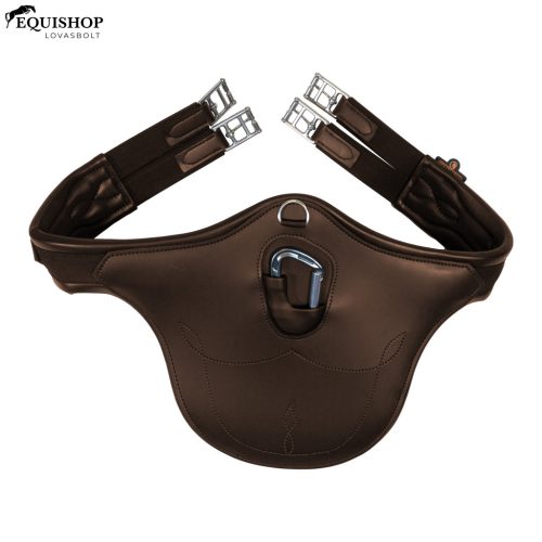 Ennek a hasvédős hevedernek az anatómiai formája aprólékosan lett kidolgozva, hogy a ló kényelmét és teljesítményét helyezze előtérbe. A forma szabaddá teszi a könyököket, csökkentve a korlátozást, és lehetővé téve a természetes, gátlástalan mozgást bármilyen tevékenység során. Az egyenletes nyomáseloszlás, amelyet mindkét végén rugalmas szalagok biztosítanak, minimalizálja a kellemetlenséget és elősegíti a ellazulást, még intenzív munka közben is. Gondosan megtervezett, lapos központi horoggal, zökkenőmentesen illeszkedik a hevederbe, hogy fokozza a biztonságot anélkül, hogy veszélyeztetné a letisztult megjelenést vagy a ló mozgásszabadságát. Az ergonómia és az innováció ezen kombinációja kiemelkedő választássá teszi azoknak a lovasoknak, akik a legjobbat akarják lovuk számára.