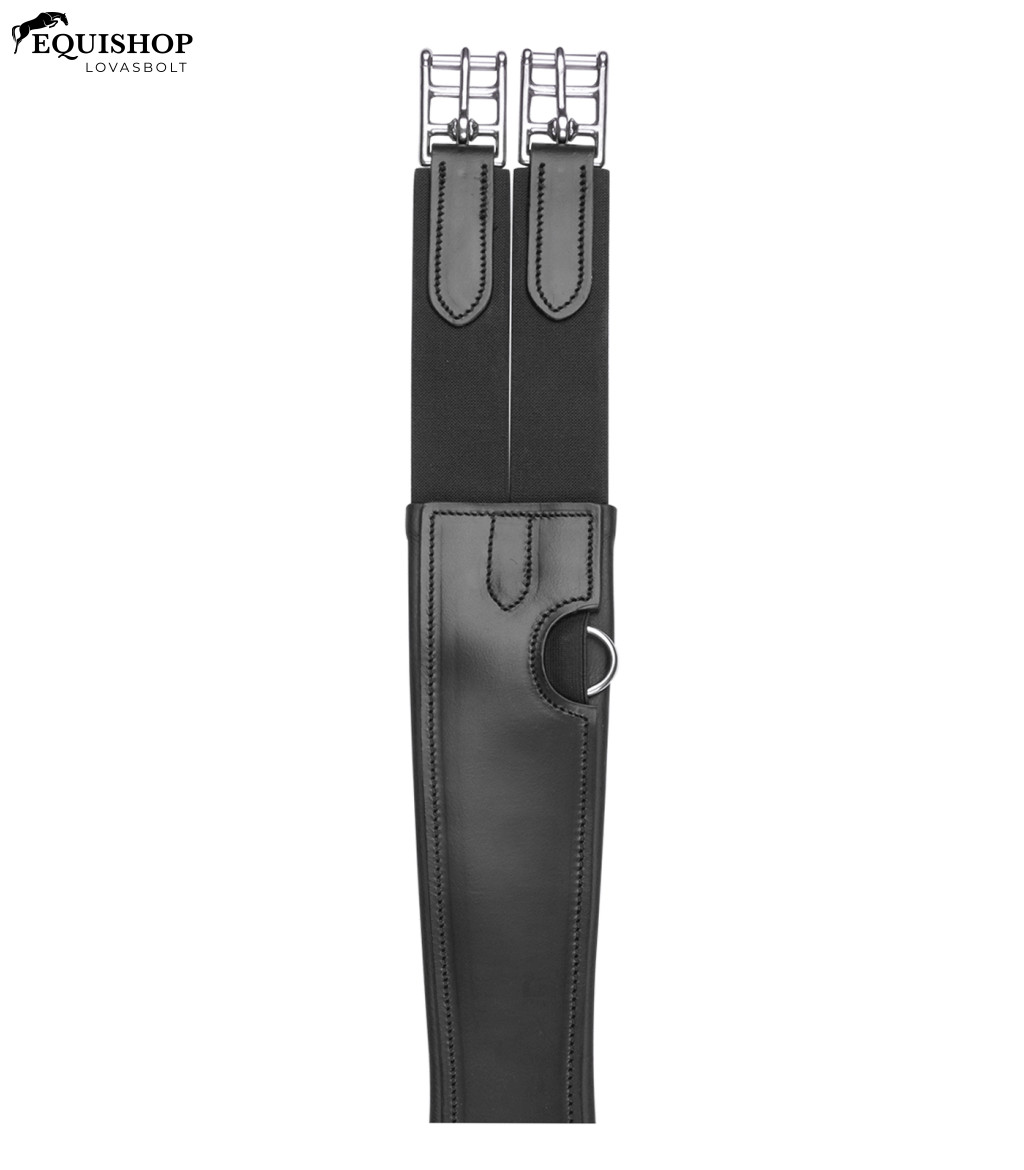 Puhán párnázott heveder kiváló minőségű bőrből. Tökéletesen illeszkedik a ló anatómiájához. Mindkét oldalon rugalmas pántvégek, rozsdamentes acél görgős csatok, valamint gyűrűk a segédszárhoz.