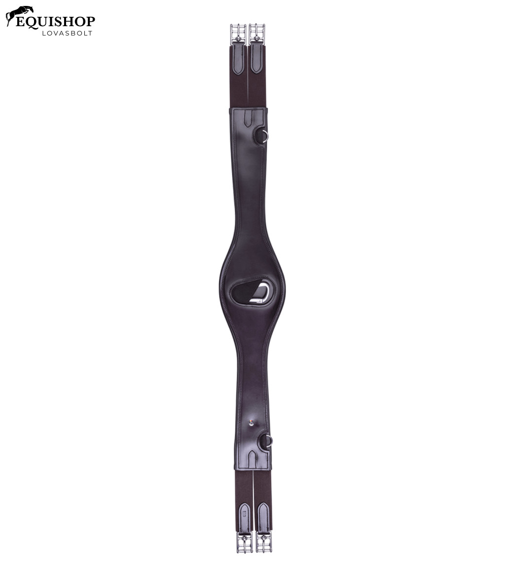 Puhán párnázott heveder kiváló minőségű bőrből. Tökéletesen illeszkedik a ló anatómiájához. Mindkét oldalon rugalmas pántvégek, rozsdamentes acél görgős csatok, valamint gyűrűk a segédszárhoz.