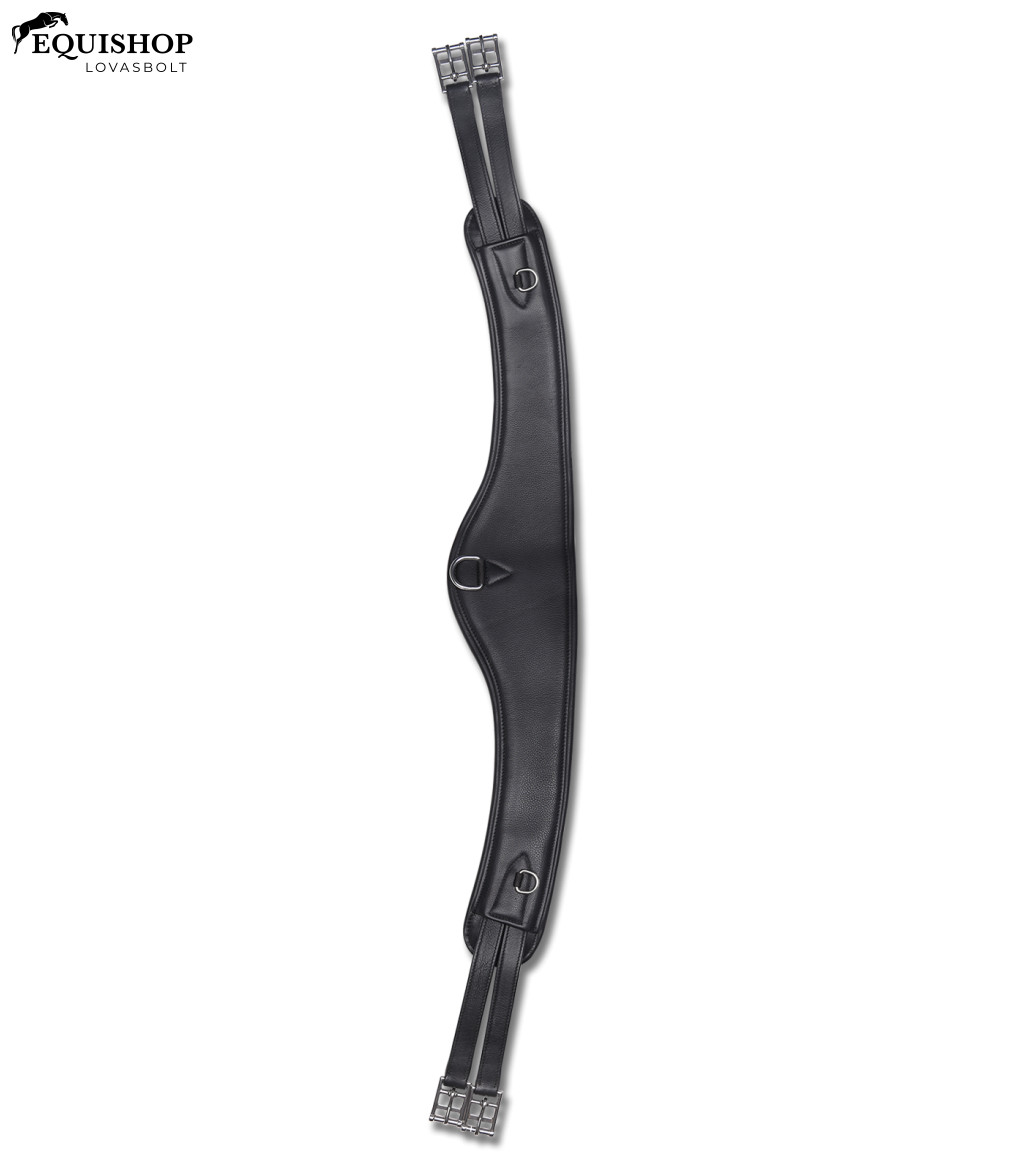 Hold alakú heveder a lekerekített hátú lovak hevederének jobb elhelyezéséhez, amikor a nyereg hajlamos előrecsúszni. Kiváló minőségű bőrből készült, nagyon puha párnázással. Három D-gyűrűvel rendelkezik a kiképző segédeszközök rögzítéséhez. A D-gyűrűk és a görgős csatok rozsdamentes acélból készültek.