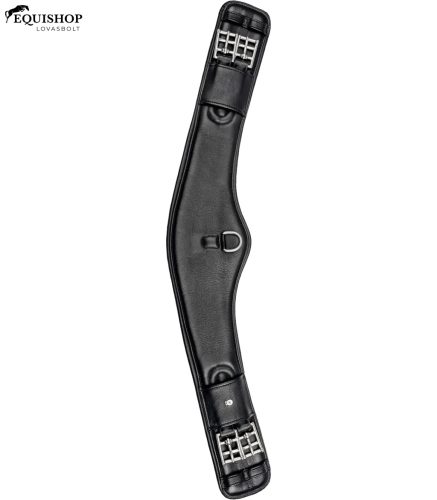 Hold alakú heveder a jobb hevederelhelyezéshez lekerekített hátú lovakon, és amikor a nyereg hajlamos előrecsúszni. Kiváló minőségű bőrből készült, nagyon puha párnázással. Rozsdamentes acél D-gyűrűvel és görgős csatokkal. Mindkét oldalon rugalmas.