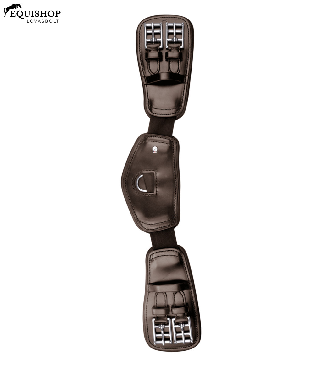 Puhán párnázott, anatómiailag formázott rövid heveder kiváló minőségű bőrből. A két rugalmas betét extra mozgásszabadságot biztosít légzés közben, és megakadályozza a hevedernyomást. A három bőr rész puha párnázású, és nagy érintkezési felületüknek köszönhetően kiváló nyomáseloszlást biztosítanak. Nincsenek rugalmas pántvégek, rozsdamentes acél görgős csatokkal és D-gyűrűvel.