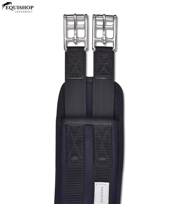 Ez az anatómiailag ívelt, bőrbarát anyagból készült nyeregheveder megakadályozza a nyomáspontok kialakulását. Beépített gélbetéttel és egyik oldalán rugalmas véggel. Rozsdamentes acél görgős csatokkal.