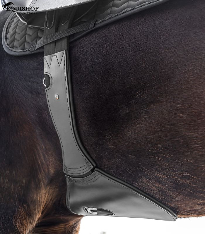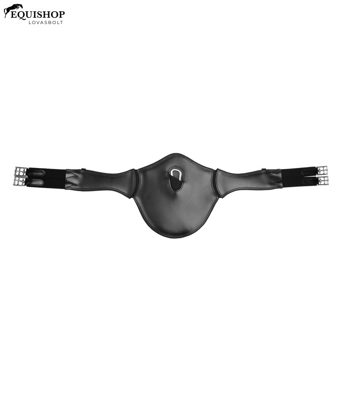Anatómiailag formázott stoplivédő, amely hatékony védelmet nyújt a patkók és stoplik ellen. Mindkét rugalmas betét extra mozgásszabadságot biztosít. Támogatják a bordakosár mozgását belégzéskor és kilégzéskor, és ellensúlyozzák a heveder terhelését. Mindkét oldalon rugalmas hevedervégek és rozsdamentes acél görgős csatok.