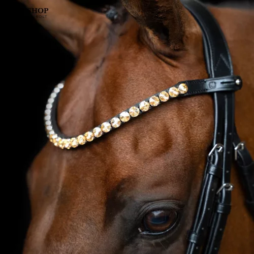 Készen állsz arra, hogy kantárod igazán csillogóvá varázsoljon, és megmutassa egyedi lovas tehetségedet? Az Imperial Riding IRHGrande homlokpántja itt van, hogy segítsen neked ebben! Tudjuk, hogy szeretsz kitűnni, és ezt a homlokpántot azoknak a lovasoknak tervezték, akik a csillogást és az egyéniséget kedvelik. Felejtsd el az unalmas felszerelést – ez a feltűnő kiegészítő a kantárodat káprázatos, egyedi darabká varázsolja, amely tökéletes arra, hogy mindenki tekintetét magára vonzza a pályán vagy az istállóban. A jellegzetes merész szellemiségünkkel alkottuk meg, hogy extra szórakozást és magabiztosságot adjunk lovaglóegyüttesednek.