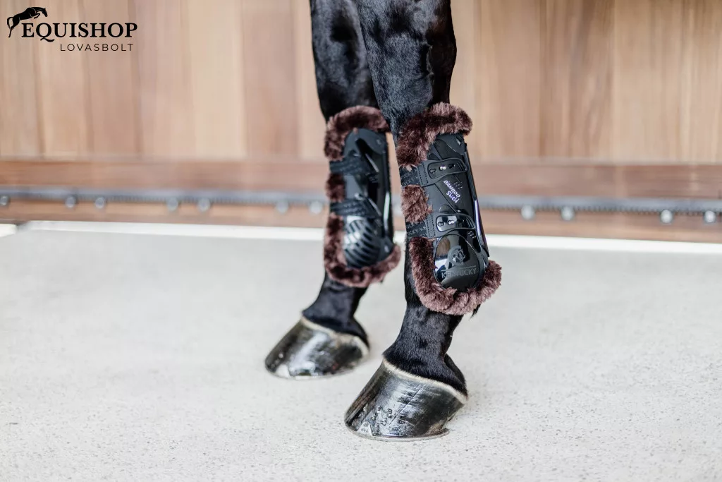Mivel a fenntarthatóságra összpontosítunk, egy új, zöld technológiát szerettünk volna kifejleszteni, amelyet mindenki ismer. - Erős TPU héj több szellőzőnyílással az optimális szellőzés és hűtés érdekében - Az ín területét bambuszpajzsunkkal erősítettük meg, hogy megakadályozza az éles tárgyak behatolását - A bambuszpajzs antibakteriális - Továbbfejlesztett szabással tervezték a maximális mozgásszabadság érdekében - Vegán báránybőr a még nagyobb kényelemért és légáteresztő képességért - Rico teszten jóváhagyott és RCT tanúsítvánnyal rendelkezik Miért a bambuszpajzs? Mivel a fenntarthatóságra összpontosítunk, egy új, zöld technológiát szerettünk volna kifejleszteni, amelyet mindenki ismer. A bambusz a világ leggyorsabban növekvő növénye, amely hatalmas szakítószilárdsággal rendelkezik, megakadályozza az éles tárgyak behatolását, és antibakteriális. A csizma erős TPU héjból készült, több szellőzőnyílással az ín területén és egy nagyobb háromszög alakú hálós szellőzéssel. Az ín területet bambuszpajzsunkkal erősítettük meg, hogy megakadályozza az áthatolást. Ahol a ló hajlik, egy puha természetes gumi darabot adtunk hozzá a súrlódás elkerülése érdekében. A csizma belső részét egy extra TPU réteggel erősítettük meg a nagy kopásállóság érdekében. Saját fejlesztésű tesztelőgépünk 80 N erőt hoz létre, amely egy borotvaéles fejszével esik le egy vízszintes lólábra. Bambusz pajzsos lócsizmánk ellenáll ennek az extrém tesztelési módszernek, amelyet nem lehet összehasonlítani semmilyen valódi lovaglás közbeni ütéssel. A csizmák Rico teszten jóváhagytak és RCT tanúsítvánnyal rendelkeznek. Szövetek és anyagok A vegán báránybőr ínvédők bambusz elasztikus anyagból készülnek, amely rendkívül lélegző vegán báránybőrből készült, amelyet évek óta használunk híres szállító kötőfékünkhöz, versenytakaróinkhoz és hevedereinkhez. Robusztus külső héjjal rendelkeznek, könnyű, mégis erős TPU héjból, az ín területén egy kiegészítő bambuszpajzs betéttel az ütések és éles tárgyak behatolása elleni optimális védelem érdekében, valamint antibakteriálisak is. Forma és méret Az anatómiai kialakításnak köszönhetően a csizma szépen illeszkedik a lólábhoz, maximális kényelmet és védelmet nyújtva. Ez lehetővé teszi a ló számára a maximális mozgásszabadságot, hogy jobban ugorhasson. Az ízület alatti puha és rugalmas gumibetét a lónak is nagyobb kényelmet biztosít mozgás közben.