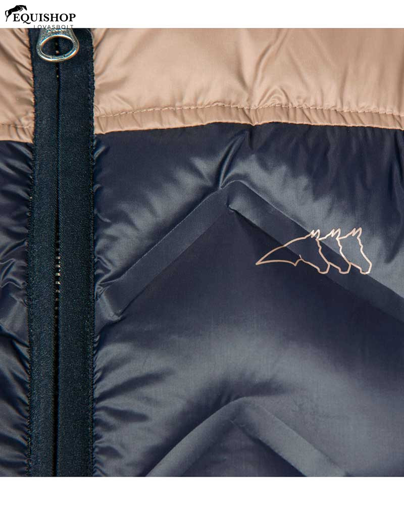 Szuper stílusos és trendi, ez a kabát előnyös és nőies szabást biztosít. Az állógallér segít megvédeni az időjárás viszontagságaitól, míg a cipzáras elülső zsebek praktikusak az értéktárgyak tárolására az udvaron és lovaglás közben.