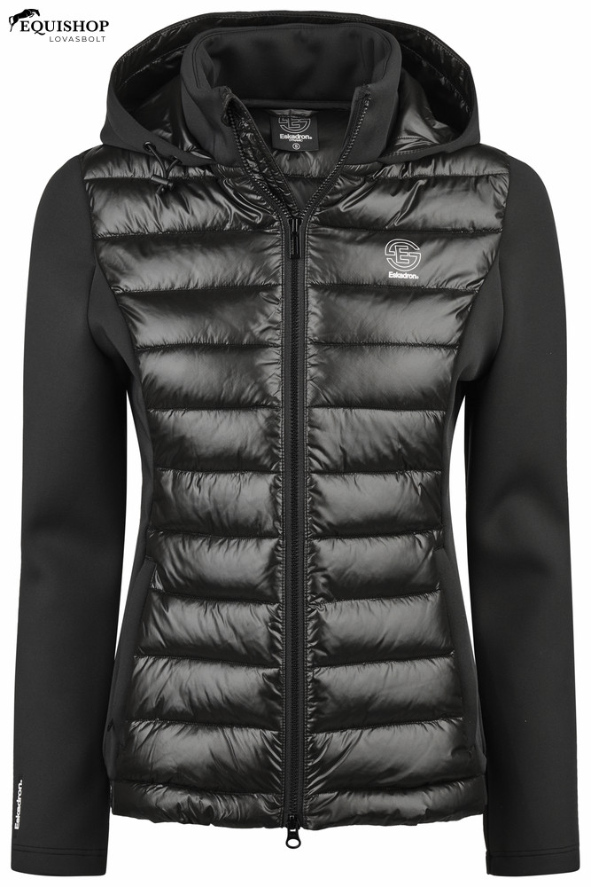 Funkcionális hibrid kabát állógallérral és fix, állítható kapucnival.