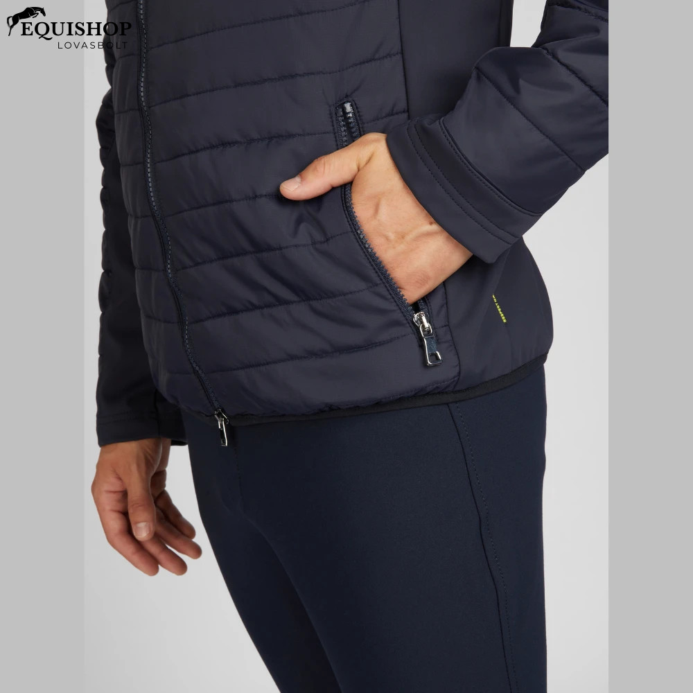 Pikeur Escudo férfi dzseki a Nos kollekcióból, nagyon kényelmes szabással, matt, vízlepergető külső anyagból. Újrahasznosított poliamid fonalból készült külső anyag. 100% újrahasznosított poliészter "REPREVE" bélés. Freudenberg Comfort Temp szálgolyókkal töltve. 72%-ban újrahasznosított poliamidból készült softshell anyag. Poliészter hálós megjelenésű hátoldal. Integrált, varrásmentes cipzár a belső bélésben a dzseki egyszerű hímzéséhez. 100% poliamidból készült. Mosógépben mosható 30°C-on öblítő nélkül - kímélő szárítógépben szárítható.