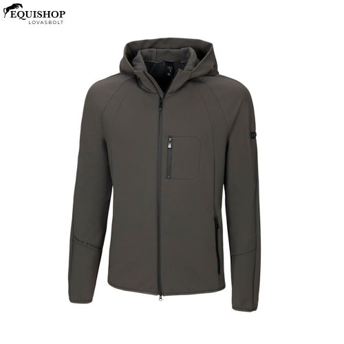 Sokoldalú és sportos Pikeur Riko férfi softshell dzseki, szél- és vízálló. Bi-elasztikus anyagból készült, puha belső oldallal és rögzített kapucnival. Matt nyomtatással a kapucniján és az ujjain, valamint vízálló, kétirányú cipzárral.