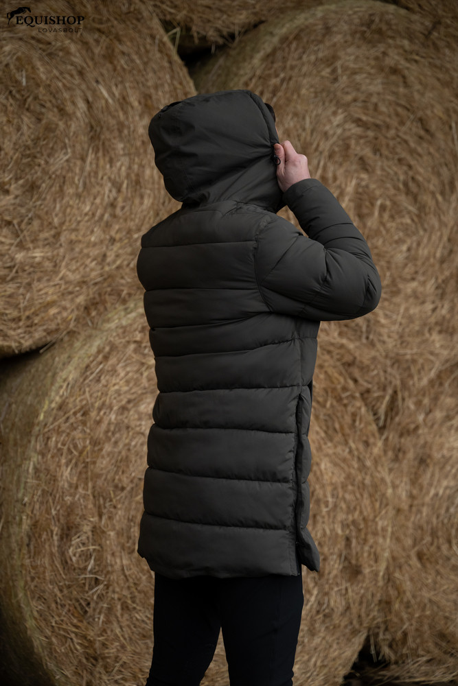 -rugalmas, vízálló steppelt parka fix kapucnival