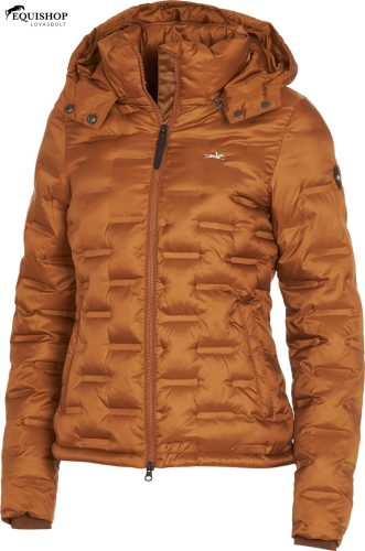A Schockemöhle Sports "Cecilia" női steppelt dzseki kellemesen könnyű anyagból készült. A dzseki optimális szabása, testreszabott szabásával és magas gallérjával minden alakot kiemel. A kapucni szükség esetén gyorsan és könnyen levehető. A női steppelt dzseki sportos, kétirányú cipzárral rendelkezik elöl és két nagyméretű, cipzáras, paszpólos zsebbel. A dizájn egyszerű, mégis elegáns, amit a bal ujjon található logós gumi jelvény hangsúlyoz.