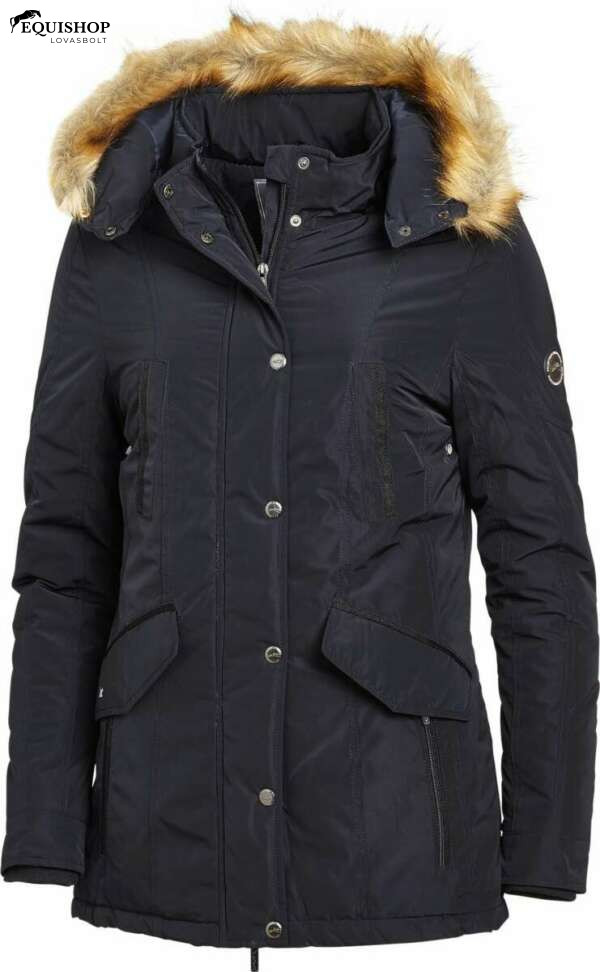 Ennek a kabátnak néhány különlegessége a levehető kapucni műszőrme, a divatos gallér és a szemet gyönyörködtető elválasztó varrások. A két füles zseb egy további cipzáras zsebbel, valamint a mellkas területén található két zseb biztosítja, hogy a lovas összes tartozéka elférjen.
