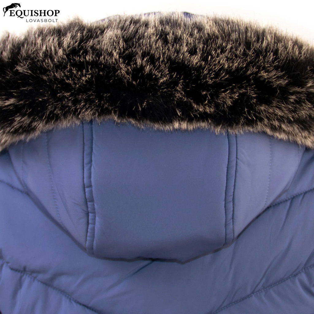 A testreszabott, derekas szabású kialakítás egy kényelmes Dupont töltetet rejt, amely fokozott meleget és hőtartást biztosít. A külső anyag vízlepergető, így a kétirányú elülső cipzárral ez a kabát praktikus és funkcionális lovas viselet.