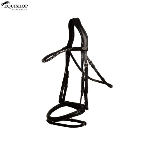 Ez a kantár az eleganciát és a praktikumot ötvözi, kifinomult sziluettet és átgondolt részleteket kínálva. A közepes méretű, enyhén szögletesre emelt és puha párnázású orrszíj letisztult megjelenést kölcsönöz a kényelem feláldozása nélkül. Kialakítása támogatja a zabla stabilitását és célzottabb érintkezést ösztönöz, különösen azoknál a lovaknál, amelyek hajlamosak kinyitni a szájukat vagy kitérni a kéz elől. Rugalmas, teljes kiőrlésű bőrből készült, azonnali rugalmasságot és luxusérzetet biztosít, ami fokozza a lovaglás élményét.