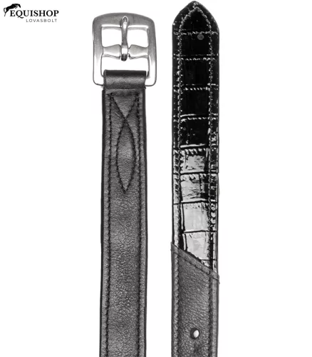 Tartós a puha, kiváló minőségű bőrbe burkolt, méretstabil nejlon magnak köszönhetően. Krokodilhatású díszítéssel a végén a stílusos megjelenés érdekében. Rozsdamentes acél csatokkal.