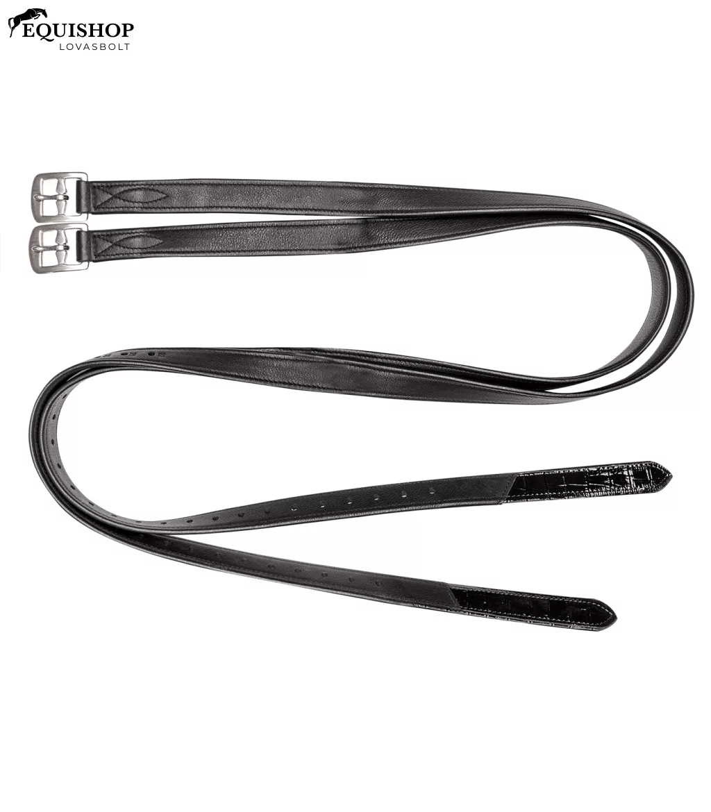 Tartós a puha, kiváló minőségű bőrbe burkolt, méretstabil nejlon magnak köszönhetően. Krokodilhatású díszítéssel a végén a stílusos megjelenés érdekében. Rozsdamentes acél csatokkal.