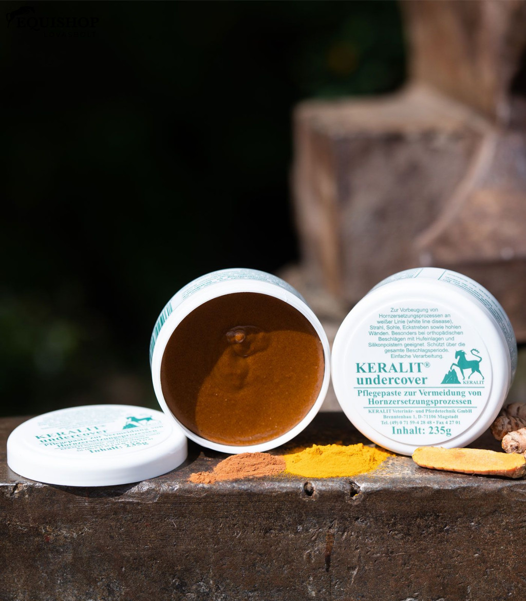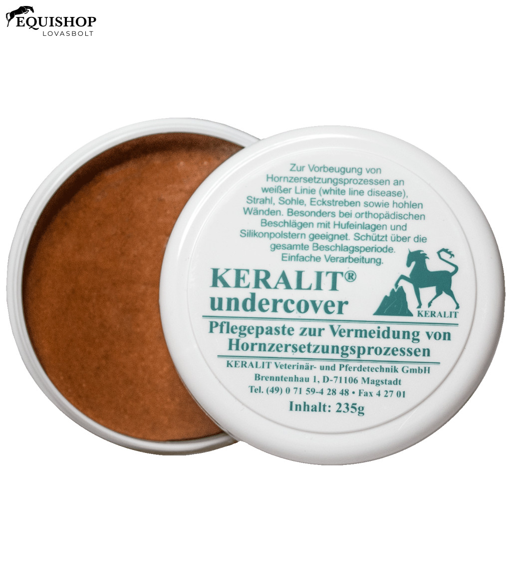 A **KERALIT Undercover** egy karbantartó paszta, amely megelőzi a szaru bomlási folyamatait a fehér vonal, a nyír, a talp, és a patafal területén.