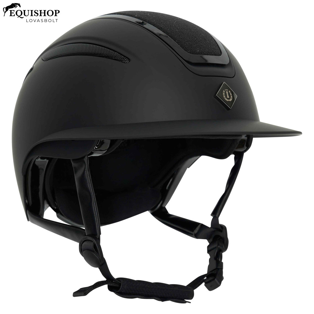 Merész lovas sisak nagy méretű napellenzővel a jobb látásért és sportos stílusért. Könnyen állítható a tökéletes illeszkedésért.