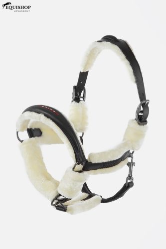 Kézzel készített kötőfék valódi bőrből, technikai szövetrészletekkel. Gunmetal hurkok és gyűrűk. Puha szintetikus védelem. Animo logó az orrszalag közepén.