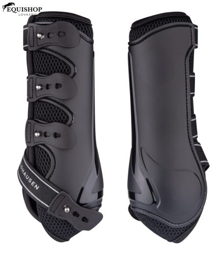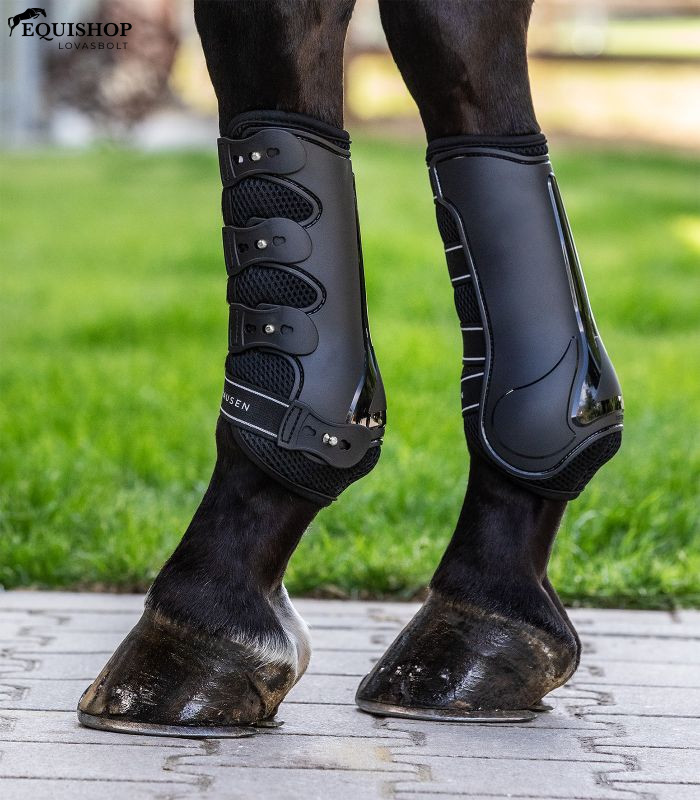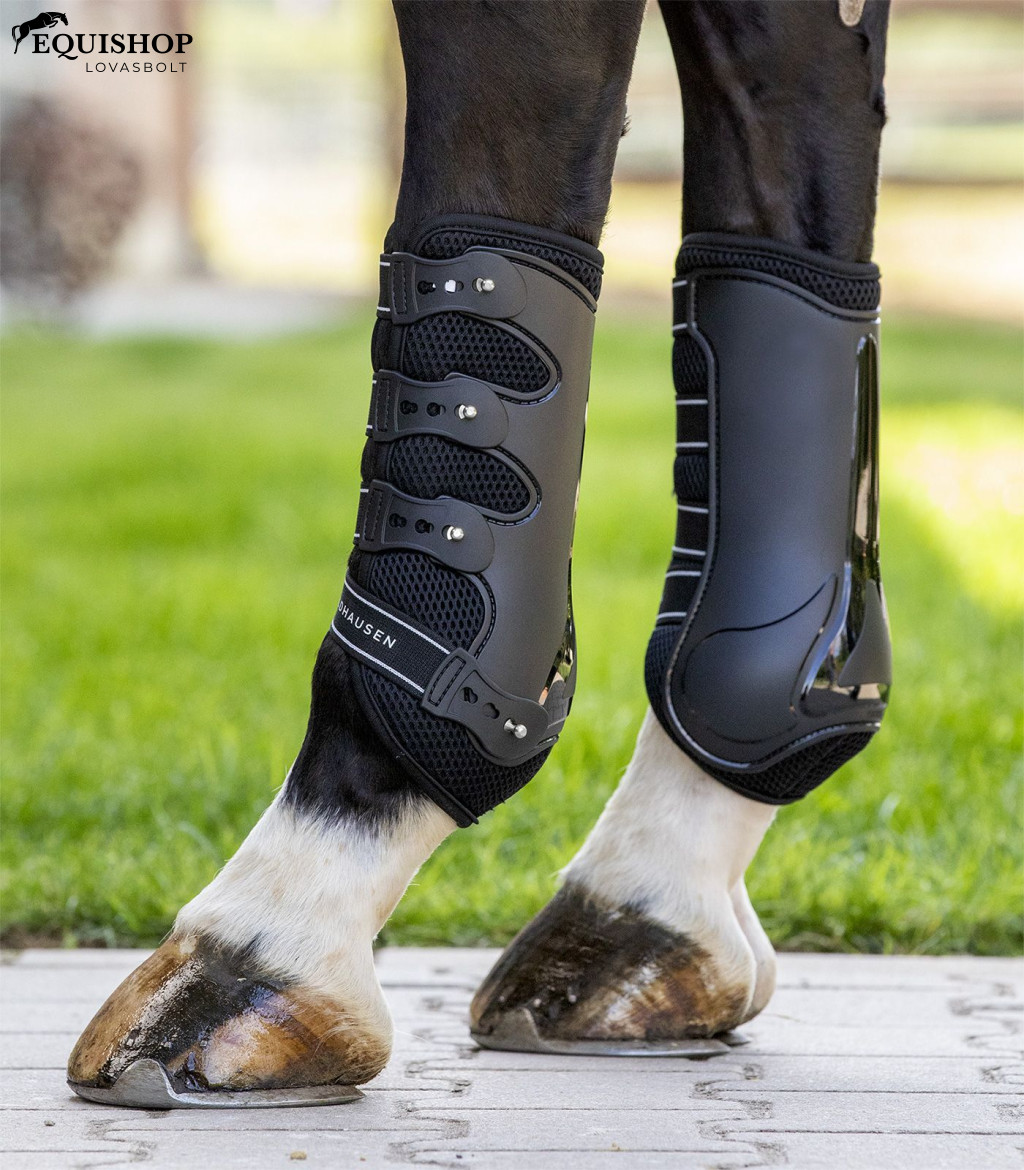Anatómiailag formázott külső héj. Ütéscsillapító és kiválóan lélegző a speciális hálós párnázásnak köszönhetően. Három helyen állítható, praktikus gyorszárral és rugalmas pántokkal a ló lábához optimális illeszkedés érdekében.