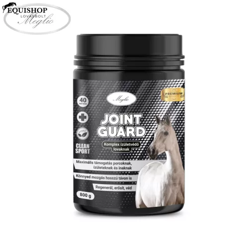 A Joint Guard egy olyan kiemelt összetételű ízületvédő, mely magas arányban tartalmazza az ízületi funkciókat leginkább javító összetevőket. Felépíti az ízületi porcot, biztosítva annak sima felületét és fájdalommentes mozgását. Tápanyagul szolgál a porcot felépítő sejteknek. Ajánlott etetni intenzív terhelés alatt, versenyre való felkészítés folyamán, valamint ízületi- és ínsérülések esetében, mozgásszervi műtéti beavatkozások után, időskori ízületi merevség és/vagy gyulladás esetén.