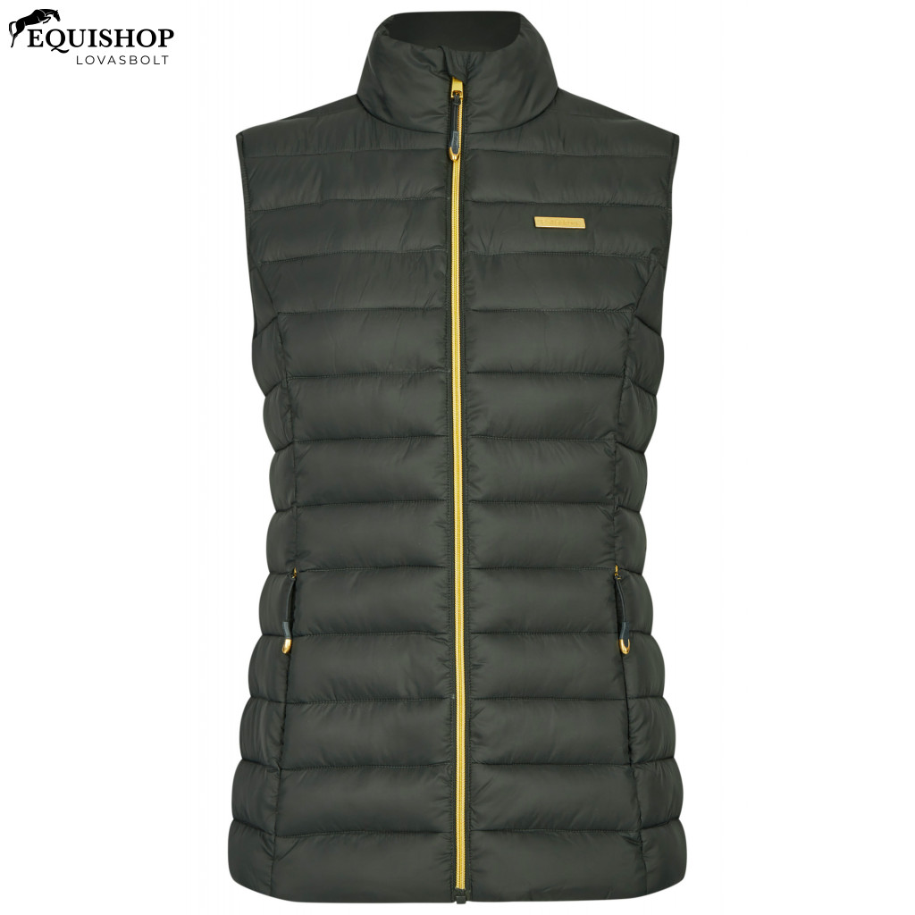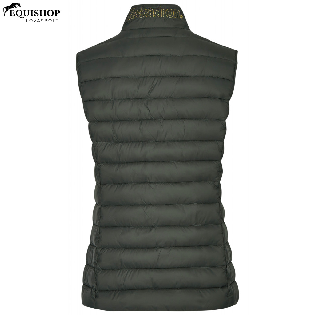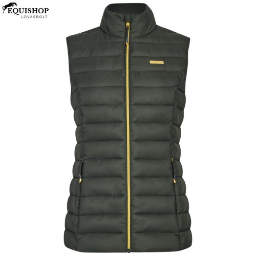 Az elegáns, magasfényű külső anyagból készült egyszerű, steppelt mellény testhezálló szabással és elegáns, arany színű részletekkel tűnik ki, többek között az állógalléron és a cipzárakon. Az oldalsó cipzáras zsebek biztonságos tárolóhelyet biztosítanak apró tárgyaknak, például mobiltelefonoknak, kulcsoknak vagy csemegéknek. Állítható zsinórral az alján a még jobb viselési kényelem érdekében.