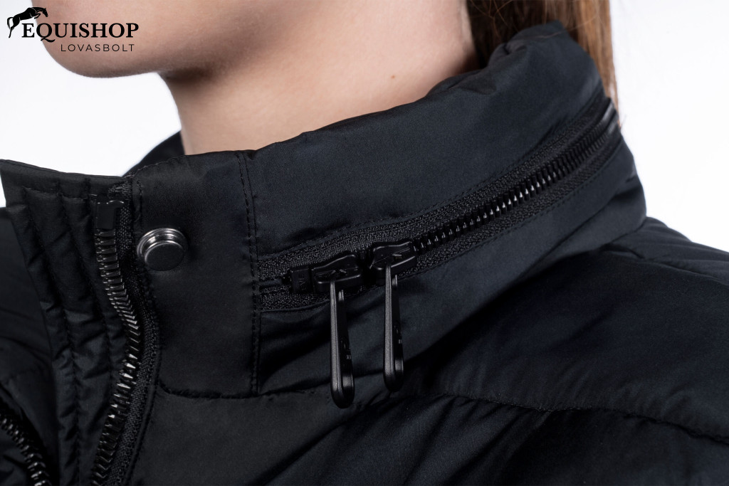 -zsebek meleg béléssel jobb zseb rugalmas akasztóval kulcsok és apróságok felakasztásához hosszú, lovaglós hasítékok az oldalsó varratokban fényvisszaverő belső mintával