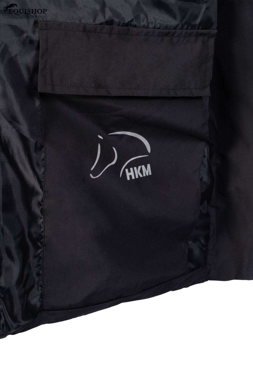-zsebek meleg béléssel jobb zseb rugalmas akasztóval kulcsok és apróságok felakasztásához hosszú, lovaglós hasítékok az oldalsó varratokban fényvisszaverő belső mintával