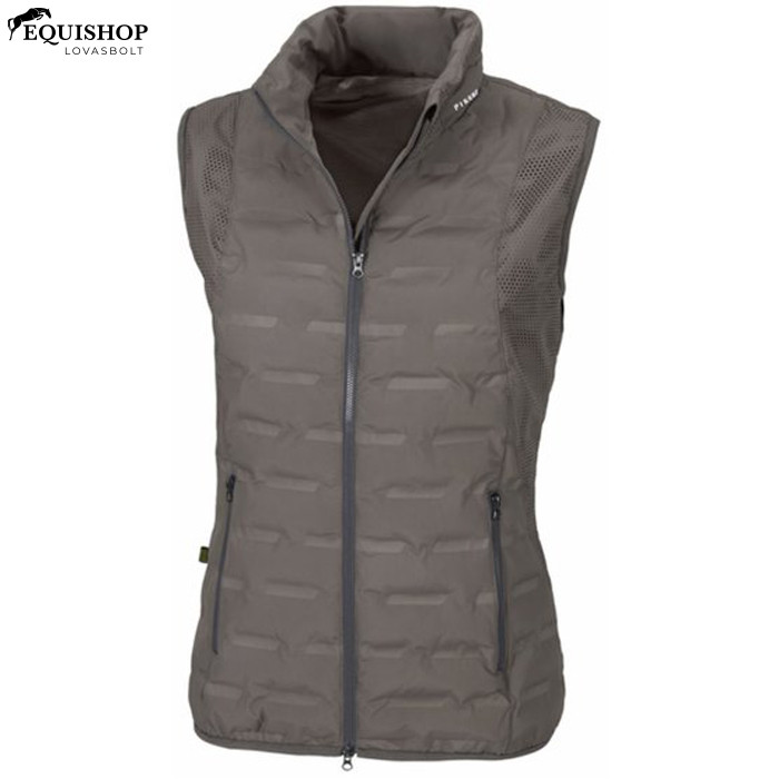 Sportos mellény, funkcionális részletekkel és egyszerű szabással. A könnyű mellény lézerrel vágott betétekkel, laza külső anyaggal, hálós belső béléssel és rostgolyókkal van töltve. Sportos, technikai megjelenésű. A diszkrét feltekerhető szalagok gyönyörű kidolgozást biztosítanak az alsó szegélynél és a karöltőknél.