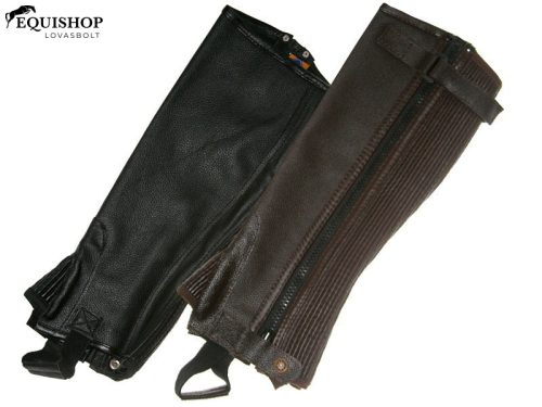 Bőr lábszárvédő a Daslötől, cipzárral és elasztikus (gumis) oldalbetéttel. Kiválóan illeszkedik a lábra.