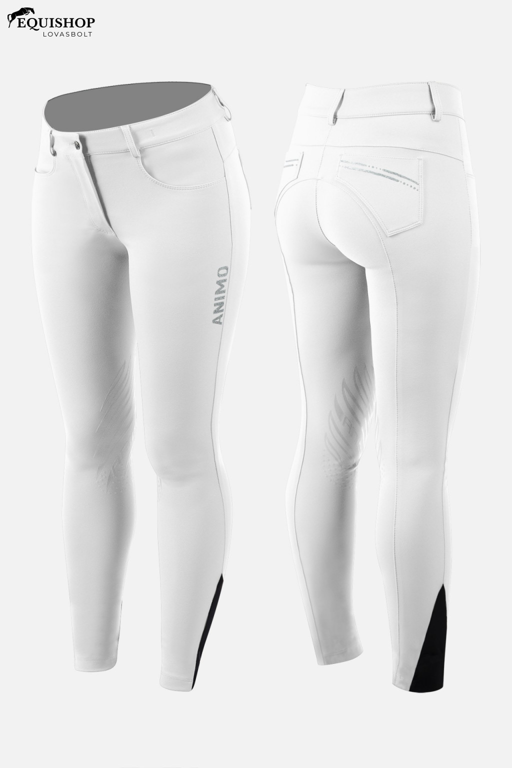 A kényelmes illeszkedés kiemeli a sziluettet. Push-up hatás. A bal lábszáron strasszokkal díszített Animo logó. „Egyszerűen innovatív” kialakítás.