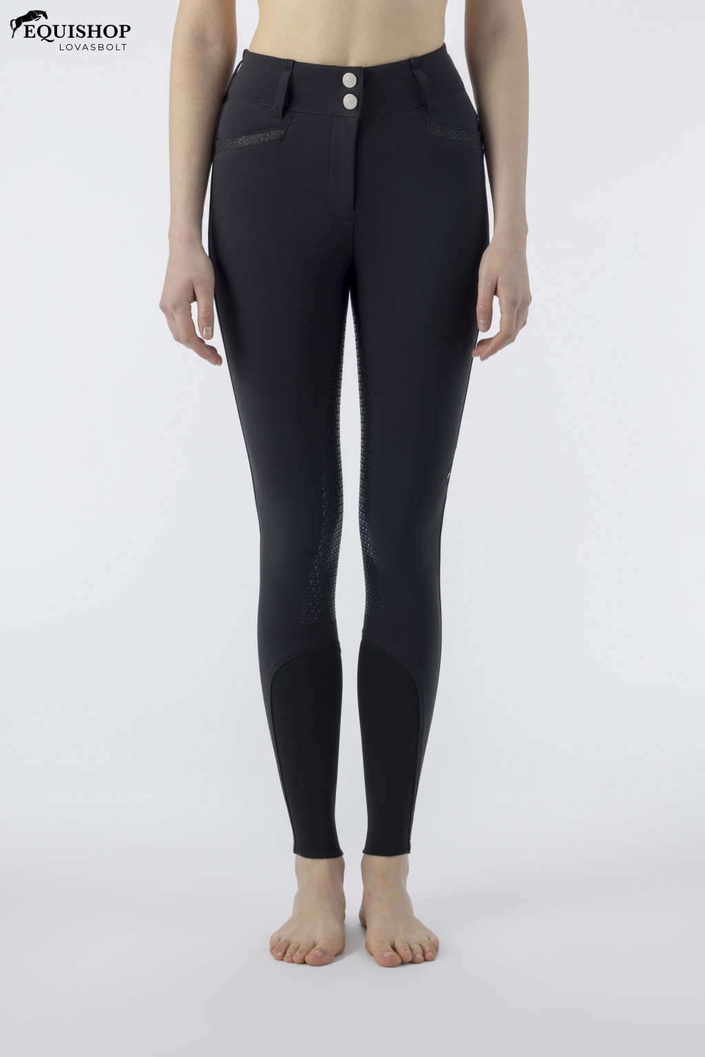 Az Equiline magas derekú Crystalek lovaglónadrágja az eleganciát és a teljesítményt ötvözi azok számára, akik stílusra és funkcionalitásra vágynak a nyeregben. Csillogó Crystal Fabric betétekkel készült, ezek a nadrágok kifinomult dizájnt és kényelmes illeszkedést kínálnak. A térd Grip technológia kiváló tapadást és stabilitást biztosít, míg a Martindale kopásállóságra tesztelt tapadás kivételes tartósságot biztosít. A magas derekú kialakítás javítja a testtartást, míg a gyűrődésgátló technológia hibátlan megjelenést biztosít. Az elasztikus alsó zár testreszabható illeszkedést biztosít, biztosítva a mozgásszabadságot a stílus feláldozása nélkül.