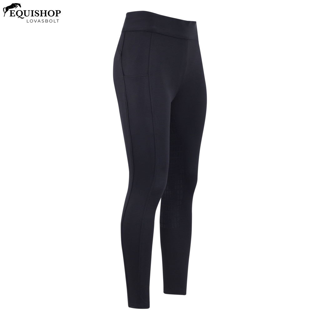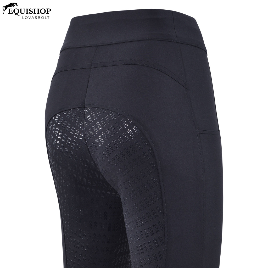 Magas derekú női lovaglónadrág szilikon teljes fogású anyaggal, telefontartó zsebekkel és sikkes rugalmas derékpánttal.