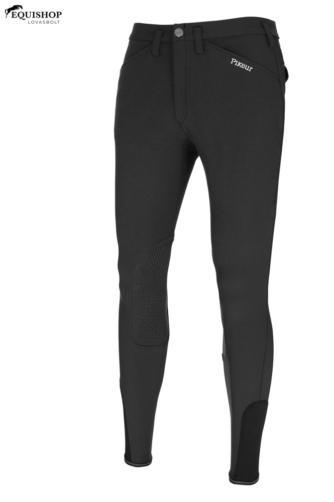 Kiváló minőségű technikai anyagból készült csúszásmentes szilikonos nadrág a térd részen.Elöl két ferde zseb,hátul gombos zseb van a nadrágon,elasztikus boka résszel.Bal oldalon elöl a zseb alatt a Pikeur felirat hímezve található.