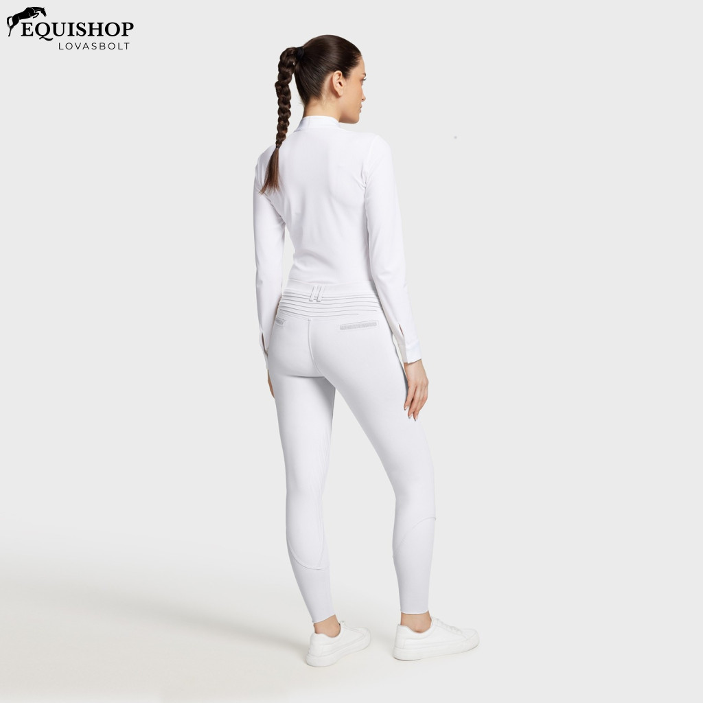 A Samshield legnépszerűbb lovaglónadrágja, az Adele lovaglónadrág kézzel szett Swarovski részlettel, Swarovski kristályszövettel és kivételes hímzéssel díszített. 4 irányban sztreccs anyagból készült ráncmentes technológiával, a kényelem és a stílus a legfontosabb ebben a kialakításban. A szövetet a kézzel készített hatrétegű tapadás fokozza, amely autógumihoz hasonlóan kopott, és testhőmérséklet-szabályozó technológiával rendelkezik, amely elvezeti a nedvességet, és szárazon tartja a bőrt, hogy kényelmes legyen. Ezek a nadrágok EPD-tanúsítvánnyal is rendelkeznek, így környezetbarátak. További jellemzők közé tartozik a rejtett telefonzseb, a lábszár összenyomható része a fokozott véráramlás és az izmok támogatása érdekében, valamint a derékpánt belső rugalmas panelje, amely a helyén tartja az inget. Könnyű kezelhetőség, 30°C-on mosógépben mosható 1. összetétel: 72%PA/28%EA 2. összetétel: 59%PA/41%EA