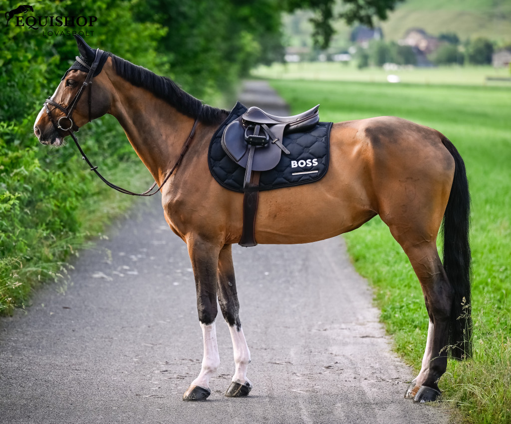 A BOSS Spring nyeregalátét anyagkeverékből készült, nagy teljesítményű, a steppelést pedig a Double B logó díszíti. A BOSS logó jól látható, alatta pedig az egyedi csík található. A nedvességelvezető párnázás is a kialakítás része. A magas marmagasság optimális nyeregillesztést és maximális mozgásszabadságot biztosít a vállaknál.