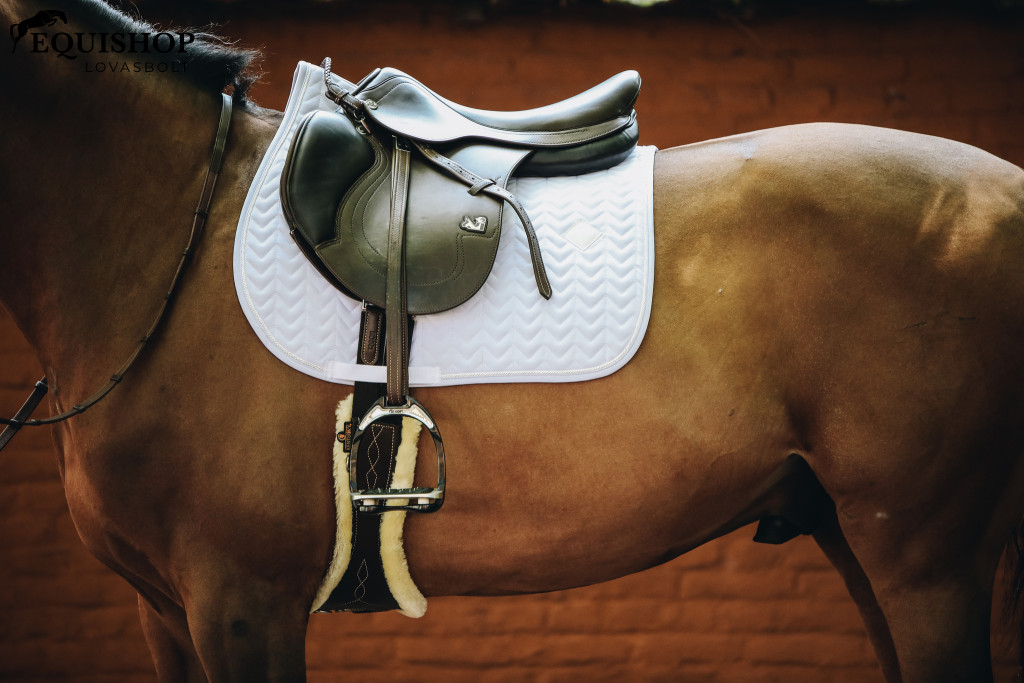 Ez a nyeregalátét egyedi halszálkamintás steppeléssel rendelkezik, és lélegző anyagból készült.